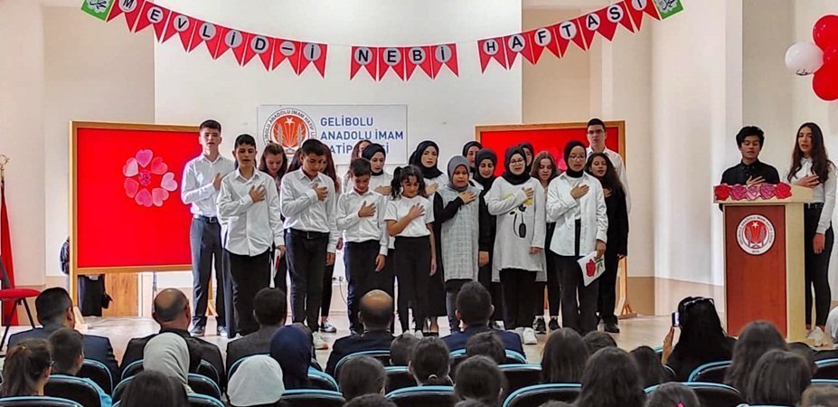 Gelibolu Anadolu İmam Hatip Lisesi öğrencileri tarafından hazırlanan Mevlid-i Nebi programını Kaymakam Bekir Abacı, kurum müdürleri, öğretmen ve öğrenciler büyük beğeniyle izlediler.
