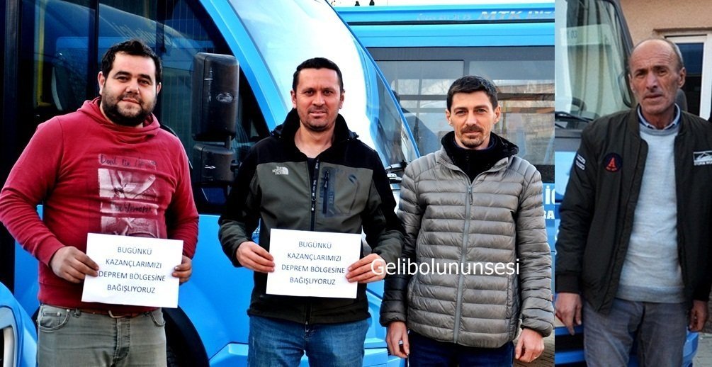 Çanakkale’nin Gelibolu ilçesindeki şehiriçi minibüsçüleri yarınki (Çarşamba) 07.00’de başlatıp, 22.30’da bitecek olan servislerinden elde edecekleri gelirin tamamını Depremzedelere bağışlayacaklar.