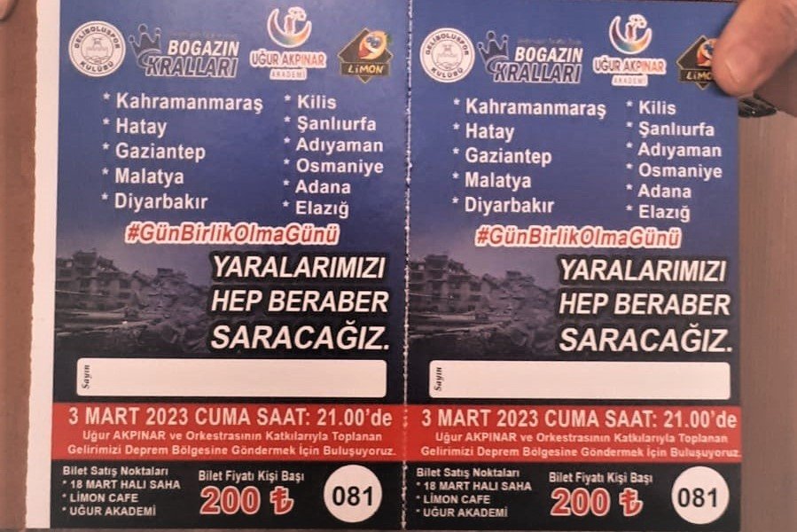 Depremzedeler yararına yapılacak olan konser 3 Mart’fa Limon kafede yapılacak. Biletler 200 Tl’den satışa sunuldu.