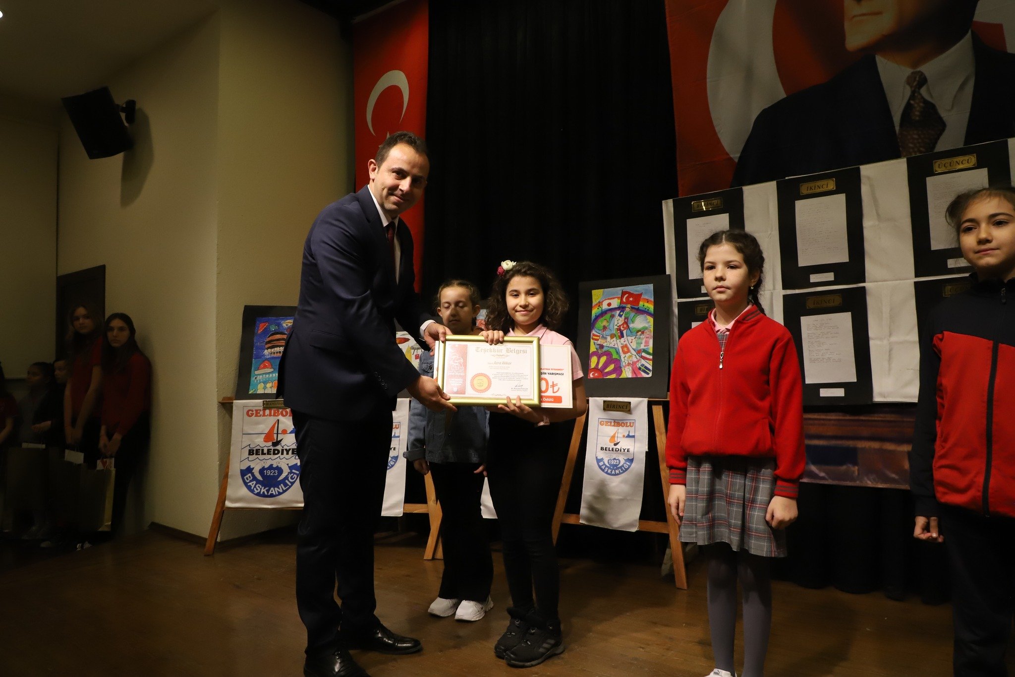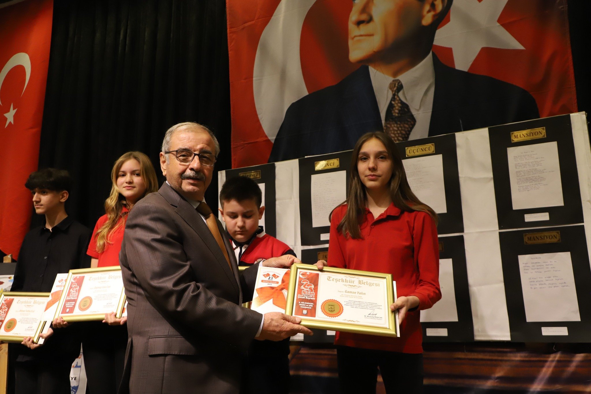 Şiir kategorisinde Piri Reis İlkokulu’ndan “Özledim Atam” isimli eseri ile Halil Ata Aktaş birinci, 26 Kasım İlkokulu’ndan “Sana Söz Atam” isimli eseri ile Mısra Sarul ikinci, yine aynı okuldan “Atatürk’e Anlatmak” isimli eseri ile Zeynep Kaçar üçüncü oldu. Bu dalda 75.Yıl Cumhuriyet İlkokulu’ndan “Özgürlük” isimli eseri ile Edanaz Kuş mansiyon ödülü verildi.