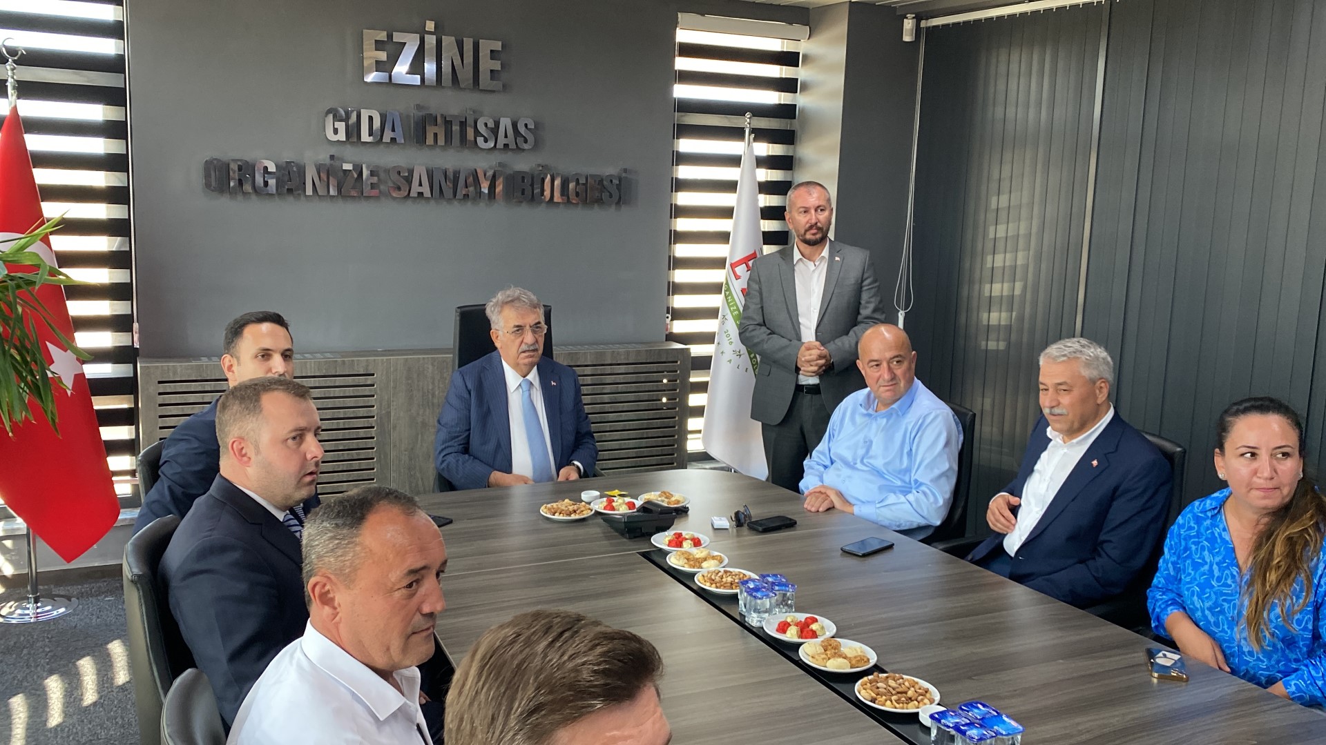 AK Parti Genel Başkan Yardımcısı Hayati Yazıcı, Çanakkale bölgesinde gerçekleştirdiği ziyaret kapsamında Ezine Gıda İhtisas Organize Sanayi Bölgesi’nde (EGİOSB)  incelemelerde bulundu.AK Parti Çanakkale İl Başkanlığı tarafından düzenlenen ‘Şehir Buluşmaları’ programı kapsamında Çanakkale’ye gelen AK Parti Genel Başkan Yardımcısı Hayati Yazıcı, Ezine ilçesindeki temaslarına hız kesmeden devam etti. Ezine Gıda İhtisas OSB’nin çalışmalarını yerinde görmek isteyen Yazıcı, Ezine Belediye Başkanı Güray Yüksel, Ezine Gıda İhtisas OSB Müdürü Alper Altınok ve partililer tarafından karşılandıEzine Gıda İhtisas Organize Sanayi Bölgesi (EGİOSB) İdari binasında AK Parti Genel Başkan Yardımcısı Hayati Yazıcı’ya, EGİOSB Müdürü Alper Altınok tarafından brifing verildi. Toplantıda, Ezine Gıda İhtisas OSB Müdürü Alper Altınok, AK Parti Genel Başkan Yardımcısı Hayati Yazıcı’ya, bölgenin faaliyetleri, çalışmaları ve fabrikaların durumu hakkında kapsamlı bir sunum gerçekleştirdi. Toplantı da AK Parti Çanakkale Milletvekili Ayhan Gider ve AK Parti Çanakkale İl Başkanı Naim Makas da yer aldı.