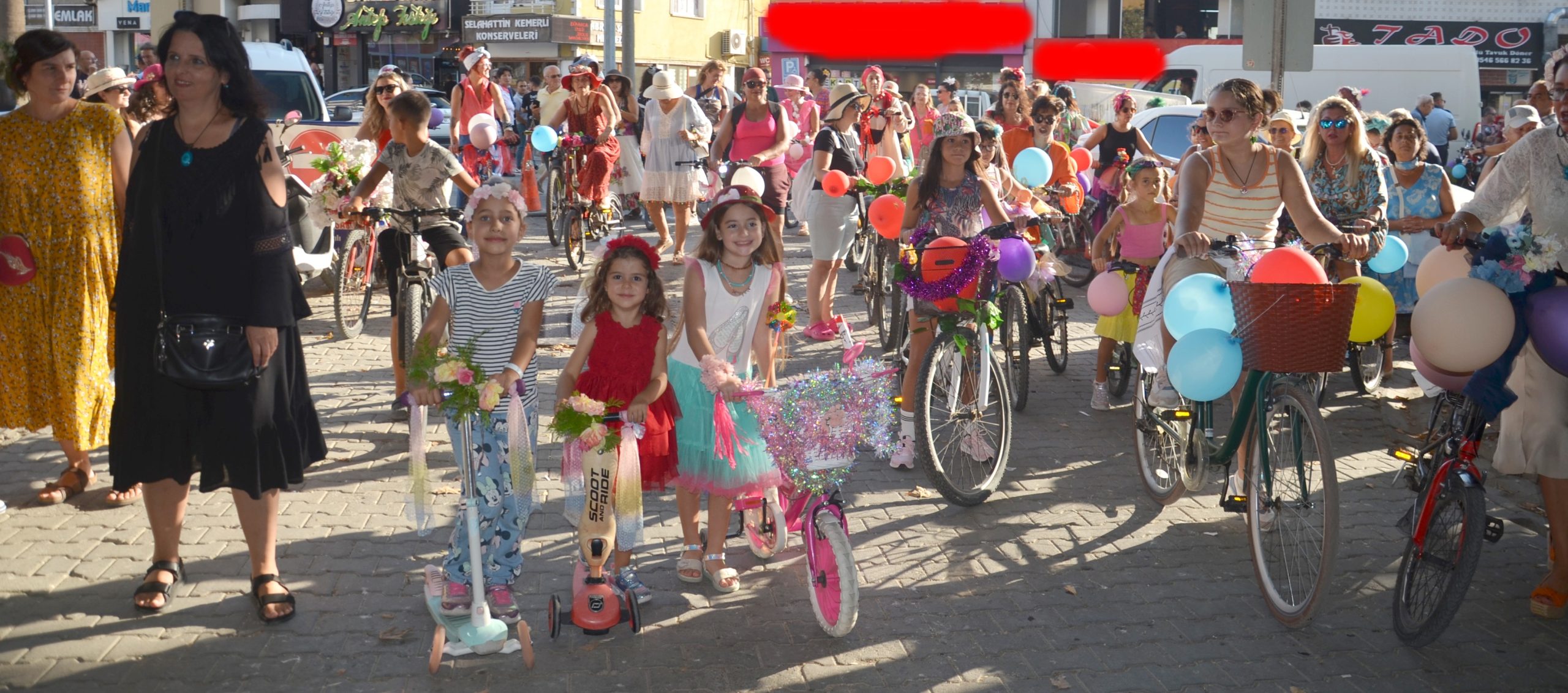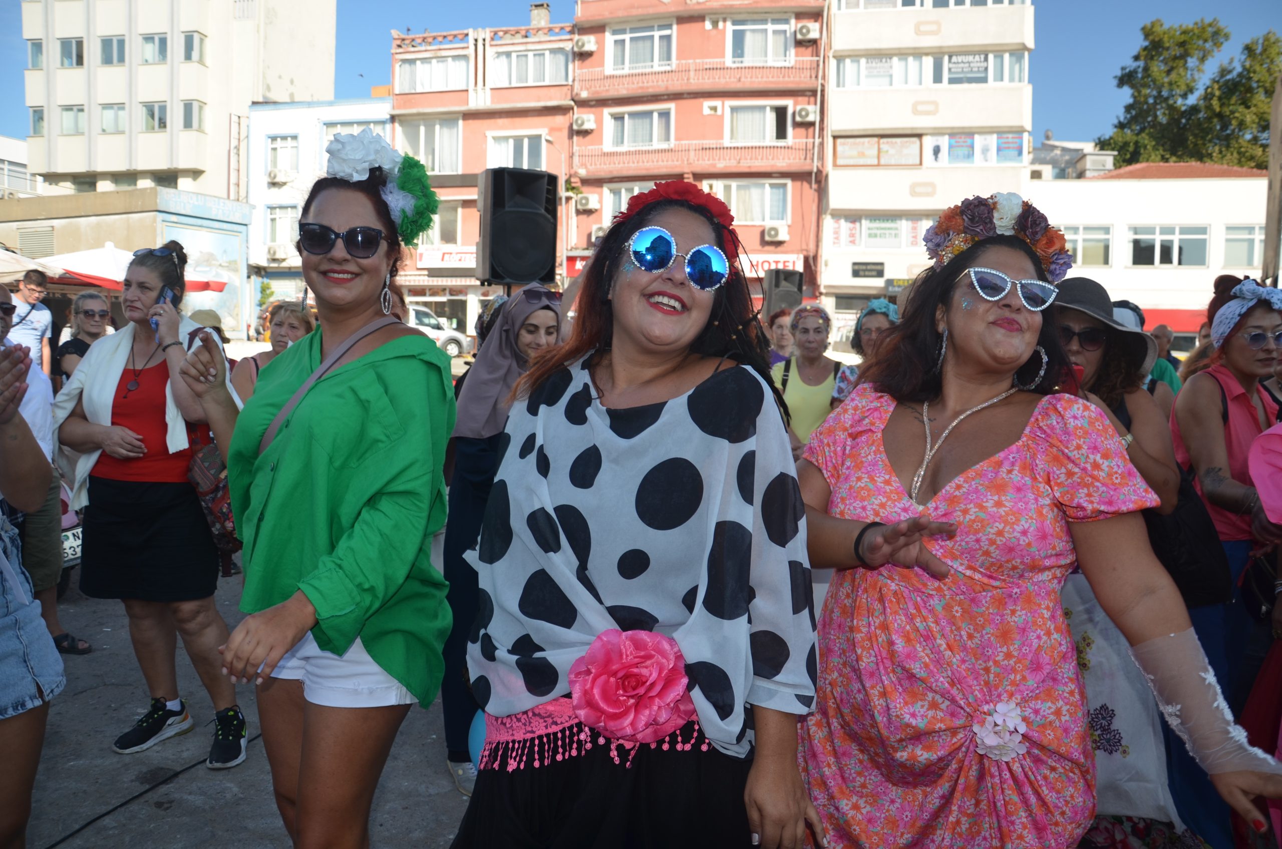 İlçenin balıkhane meydanında hem kendilerini hem de bisikletlerini süsleyerek toplanan yüzlerce süslü kadın, önce müzik eşliğinde gönüllerince dans edip göbek atarak, özgürlüklerini ilan ettiler.