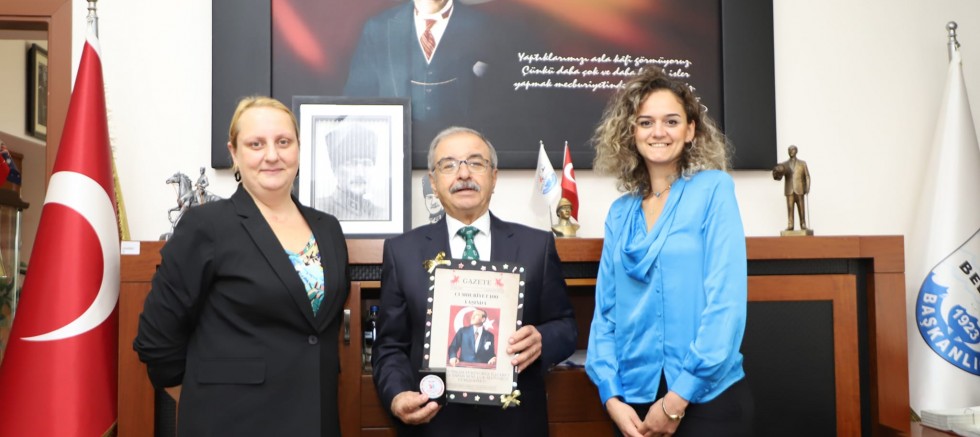 Cumhuriyetin 100. yılı için hazırladıkları anı gazetesini, okul müdüresi Hatice Özen  ve okul öğretmeni tarafından Belediye Başkanı Mustafa Özacar’a hediye etti.