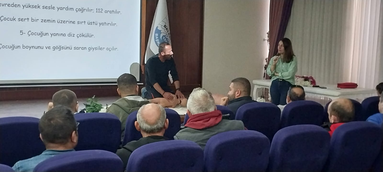 Çanakkale’nin Gelibolu ilçesinde İlkyardım Eğitmeni tarafından belediye personeline yönelik ilkyardım eğitimi veriliyor.