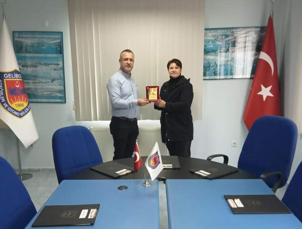 Çanakkale’nin Gelibolu ilçendeki Şoförler ve Otomobilciler Derneğine kayıtlı tek bayan dolmuş şoförü olan Emine Şarlak’a 10’cu yıl plaketi verildi