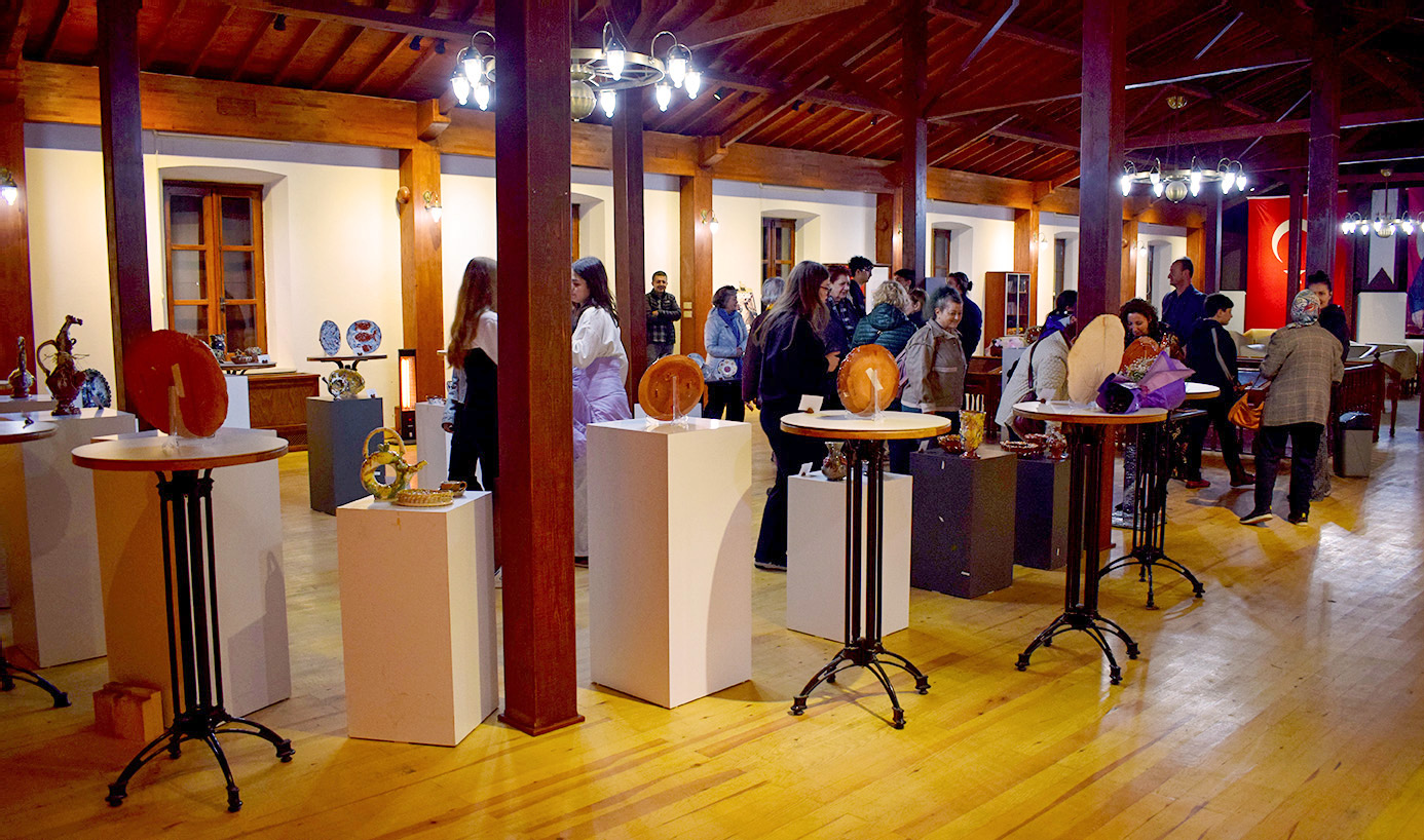 Çamuru sanata dönüştüren üç bayan seramik sanatçısının Perşembe günü açtıkları sergi ilgiyle sanat severler tarafından gezildi.