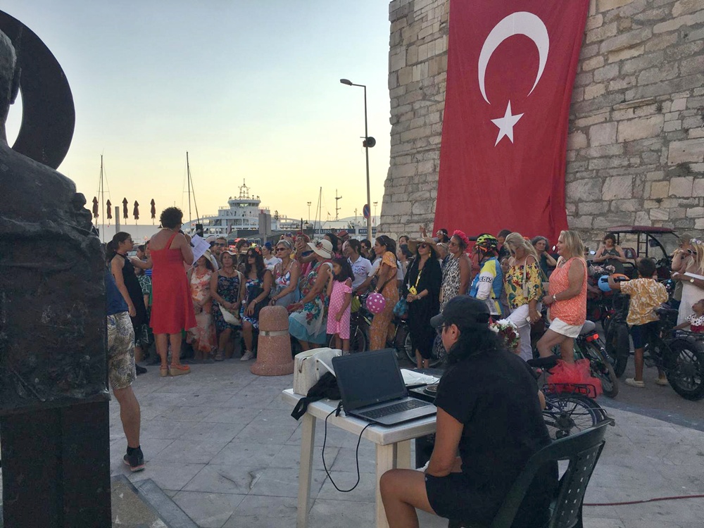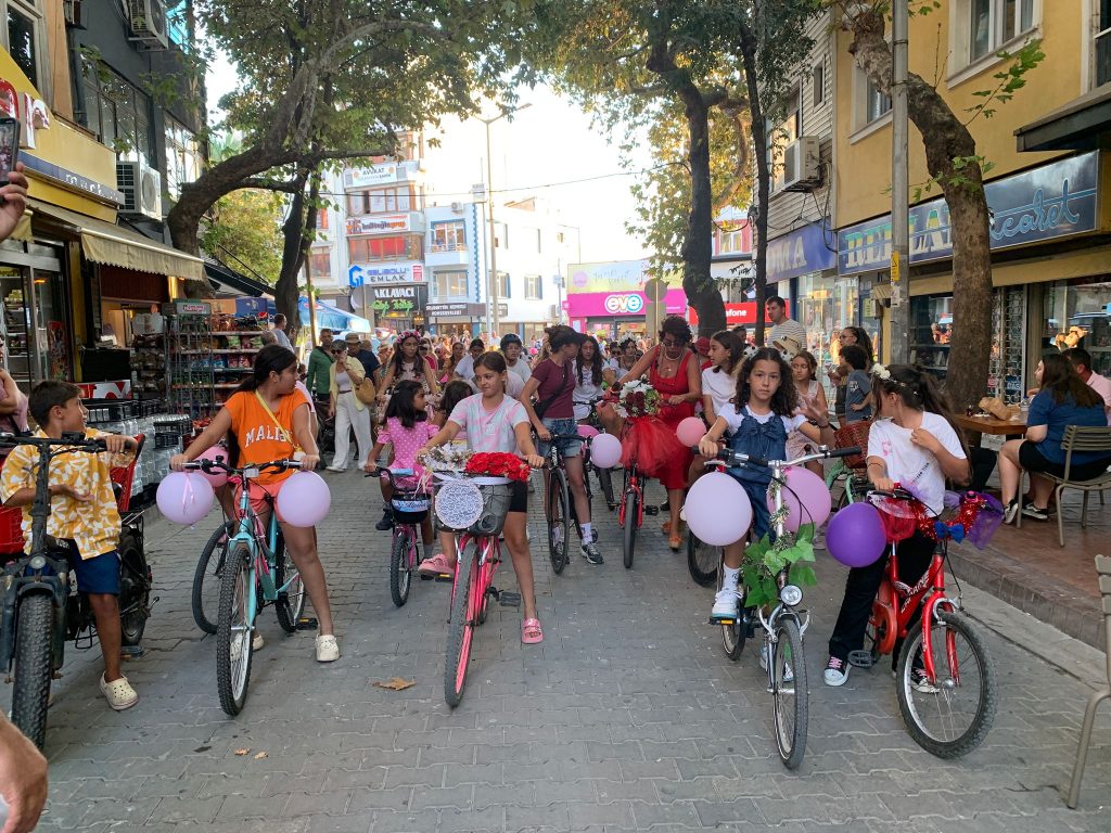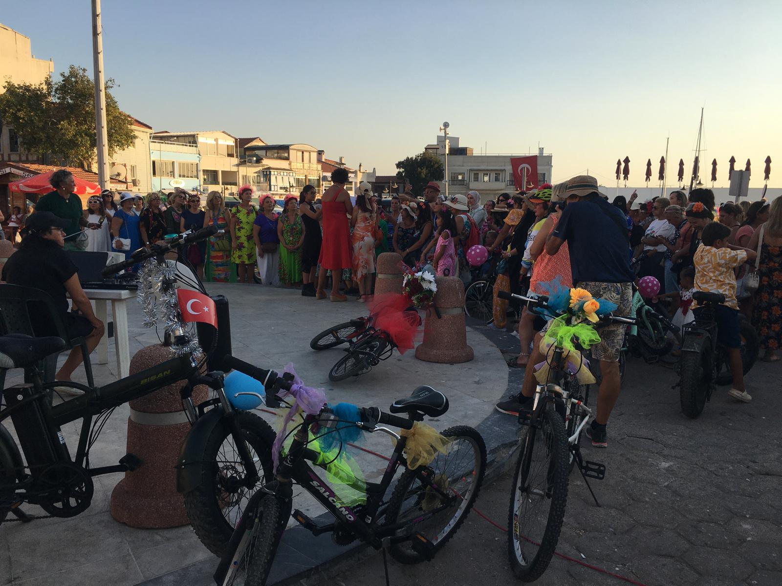 Bu konuşmanın ardından kadınlar, süsledikleri bisikletleriyle konvoy eşliğinde trafiğe kapalı yoldan geçerek sahil yolundan Çınaraltı’na doğru yola koyuldular.