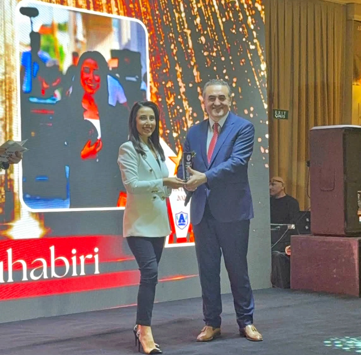 REV Okulları öğrencileri ile AREV Vakfı mensupları, 2026 yılının en başarılı kadın muhabiri olarak Kanal 7’nin acar muhabiri Müge Çakmak’ı seçti.