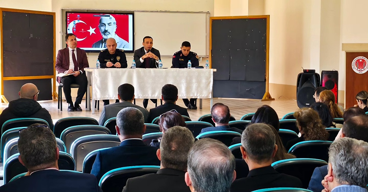 Toplantıda, okullarda huzur ve güven ortamının sağlanması, öğrencilerin fiziksel ve psikolojik güvenliğinin korunması ile olası risklere karşı alınacak önlemler ele alındı. Kurumlar arası iş birliğinin güçlendirilmesi ve özellikle son dönemde yaşanan olaylar doğrultusunda güvenlik tedbirlerinin artırılması gerektiği vurgulandı.