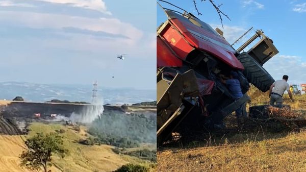 Çanakkale’nin Gelibolu ilçesine bağlı Kavaklıtepe mevkiinde meydana gelen ekili buğday tarlası yangınında 50 dönüm alan yanarken, yangından kaçmaya çalışan Biçerdöver devrildi.Akşam saatlerinde henüz çıkış...