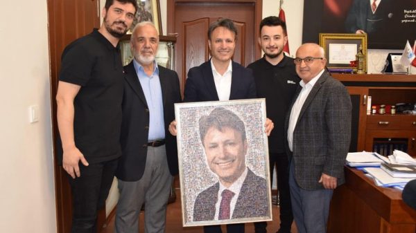 Ay Yapı İnşaat Yönetim Kurulu Üyeleri Aydın Yılmaz, Mehmet Kiraz, Şahsuvar Yılmaz ve Mesut Kiraz, Belediye Başkanı Dr. Ali Kamil Soyuak’ı ziyaret ederek kolaj...