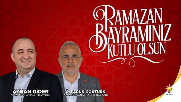 Ak Parti Çanakkale İl Başkanı Ömer Faruk Göktürk mübarek Ramazan Bayramı nedeniyle bir kutlama mesajı yayınladı. Köktür mesajında, “Manevi huzur, paylaşma ve dayanışma ayı...